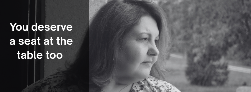 You deserve a seat at the table too. Not when you’ve earned it. Not when you’ve shrunk yourself enough to fit.